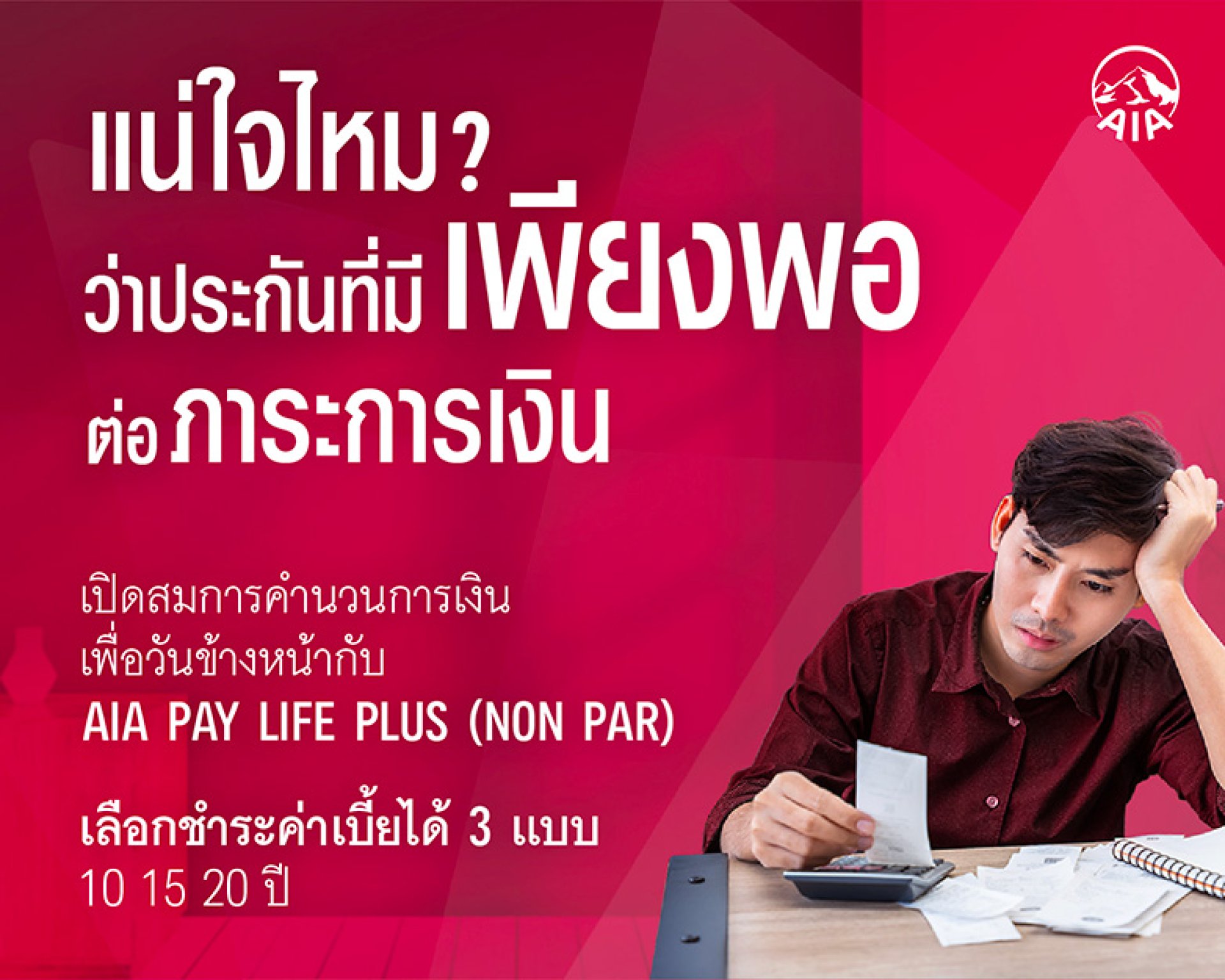 วางแผนตั้งแต่วันนี้ เพื่อชีวิตในอนาคตกับ AIA PAY LIFE PLUS (NON PAR) แค่นี้ก็ไม่ต้องกังวลเรื่องภาระทางการเงินของคนข้างหลังอีกด้วย